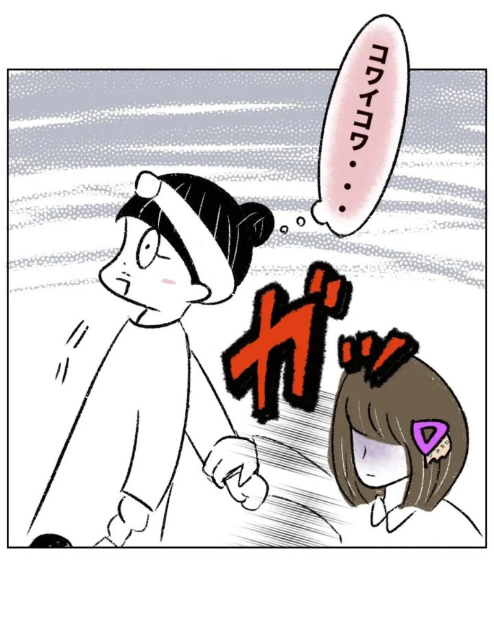 まるさんが気づかないふりをしてゆかちゃんママの前を通り過ぎようとすると、突然ゆかちゃんママがガッとまるさんの腕を掴みました。