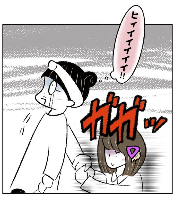再びゆかちゃんママに腕を掴まれてしまい、「ヒィィィ!!」と焦るまるさん。