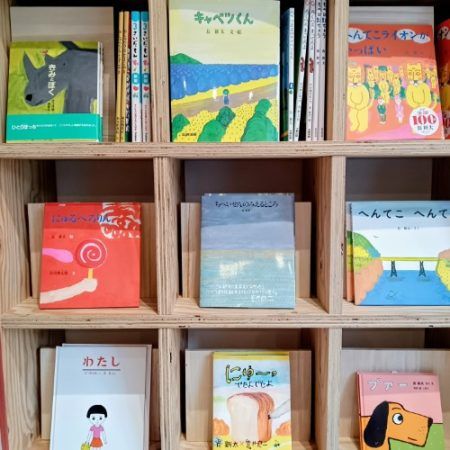 長 新太さんのコーナーが有り、わかりやすく並んでいます。おもわず手に取って眺めたくなる、目に優しい色合いの表紙だなぁと感じます。