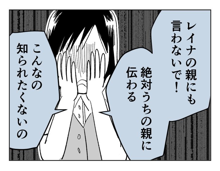 今回の出来事に憔悴しきっているサトミちゃんですが、親や先生に言うことは頑なに拒否します。親を心配させたくないからなのか、必死の形相に、レイナちゃんも納得せざるをえませんでした。
