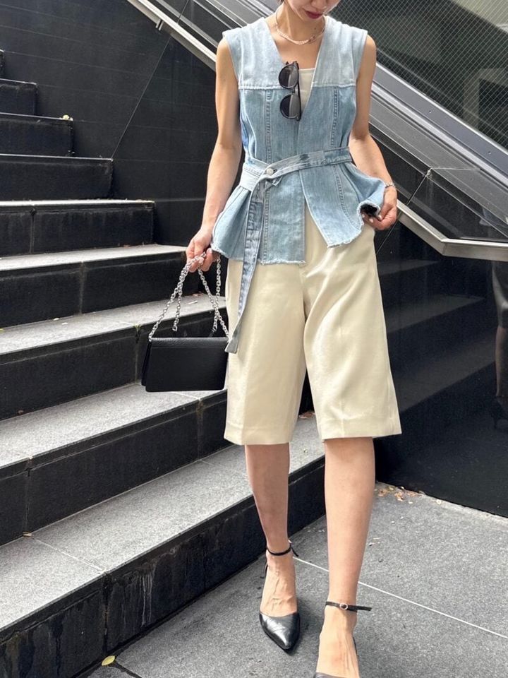 【30代スナップ】トレンドのハーフパンツ、夏の着こなしは?デニムトップスで夏仕様にアレンジ!