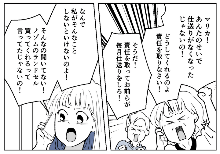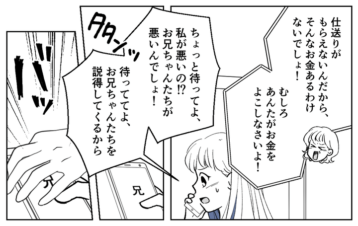 両親から非難される日々がはじまりました。ノゾムのランドセルの話も消え、逆に金を要求される始末。兄に怒って連絡しようとしましたが、ナオトに止められました。「お前はいつもそうだ」と言われ、離婚を切り出されてしまいました。