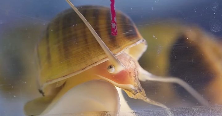 スクミリンゴガイ(触覚の付け根に眼球がある)/ Credit: Stowers Institute for Medical Research(youtube, 2025)