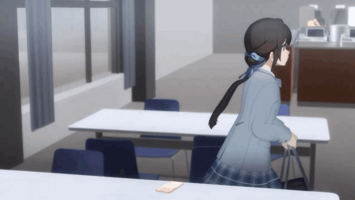 5時間目の移動教室に向かうあさぎは、テーブルの上にスマートフォンを置き忘れてしまう。