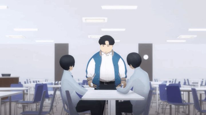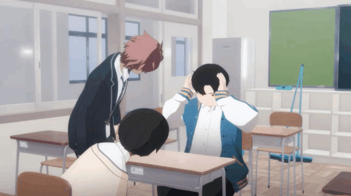 勇気を振り絞って告白した中学時代のあさぎ(CV:鈴代紗弓)を見て、バカにしたように笑う男子生徒。