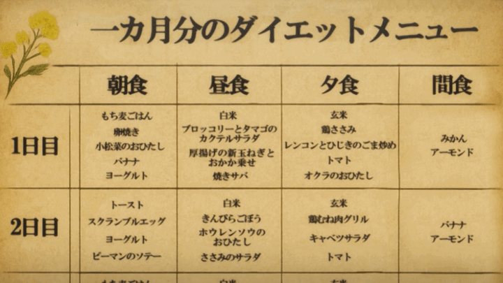あさぎが見せたのは、一カ月分のダイエットメニューだった。