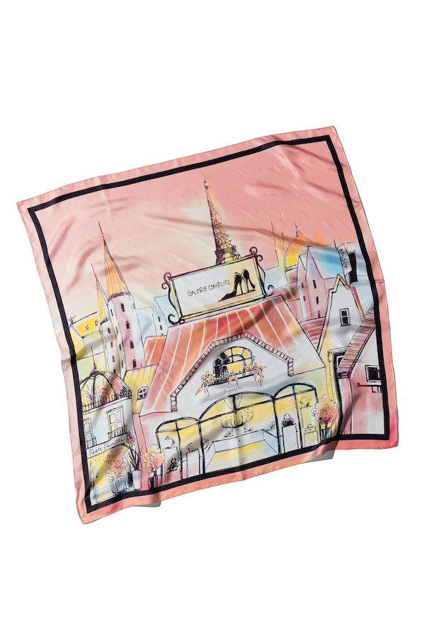 今季のトレンドと言われている、ピンクやベージュなどの柔らかい色みのスカーフ。夏から秋にかけて注目のブラウンとも相性抜群です。