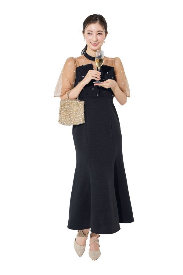バッグ¥58,300/アンテプリマ/ワイヤーバッグ(アンテプリマジャパン) ドレス¥18,900/Leja イヤリング¥2,530/アネモネ(サンポークリエイト) 靴¥8,800/オリエンタルトラフィック(ダブルエー)