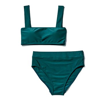 グリーンスイムセットアップ/カバナバシュ(ロンハーマン) 太めストラップが印象的なスクエアネックビキニ。肌を美しく見せてくれる深みのあるグリーン。トップスはゆるカーディガン、ざっくりとしたローゲージニットのインナーにも。