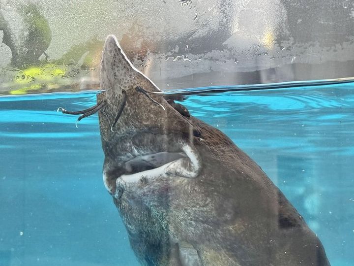 チョウザメの口まわり。ヒゲと歯の無い口が可愛いです。