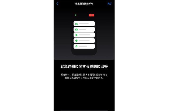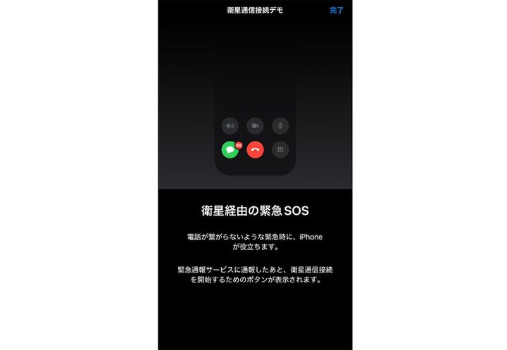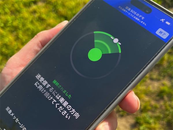 ①設定>緊急SOS>衛星経由の緊急SOS>デモを試す>衛星通信接続のテストをする。