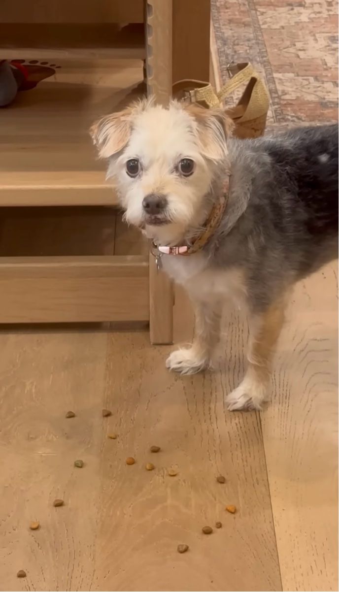 飼い主さんから、おさんぽ前に隠れてごはんを食べている子は誰かと尋ねられたペニー。