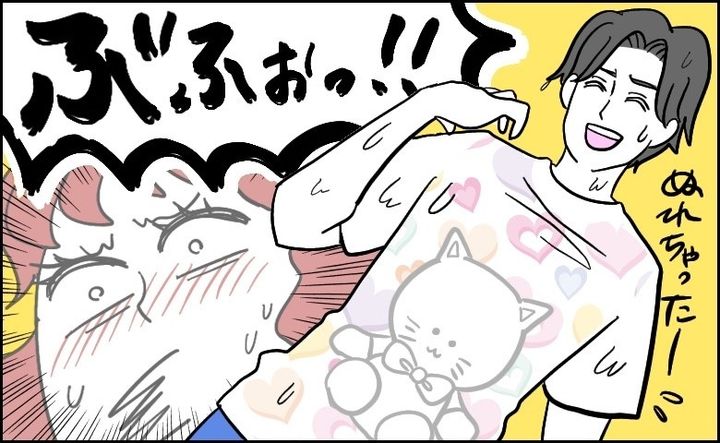 「やば、ちょっと濡れたわ」と言う彼を見た瞬間……私は吹き出してしまいました。