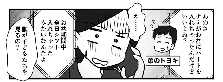 それなのに、中心となって動かないといけない弟に、手がかかる子ども2人を丸投げする義妹の感覚がまったく理解できないのです。新盆がもうすぐというタイミングで、まわりの人への配慮がない行動をするなんて信じられません。