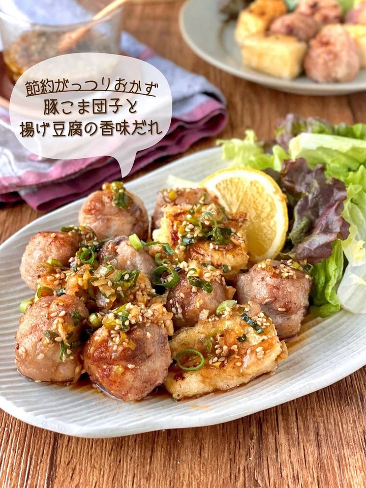 豚こま団子と揚げ豆腐の香味だれ