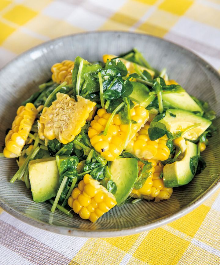 「とうもろこしと豆苗のアボカドナムル」