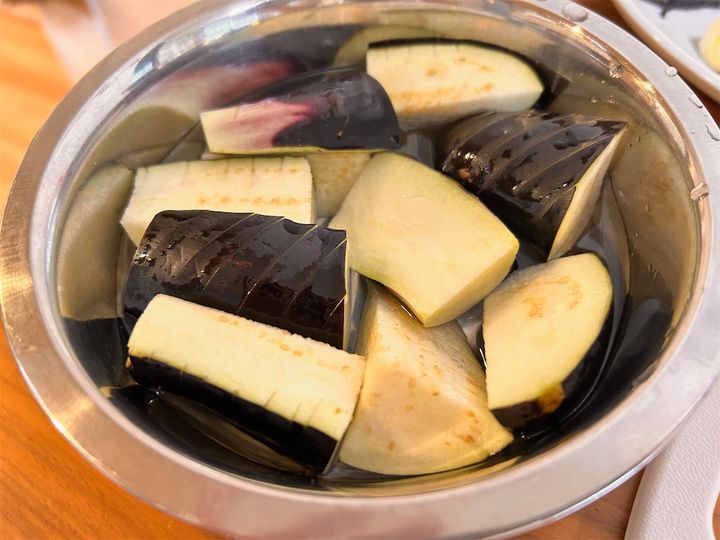1切れをさらに3~5等分に切り、水に5分浸してアクを抜きます。