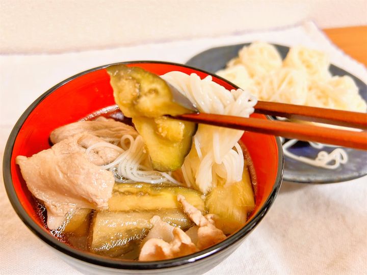 そうめんの新しい食べ方♪「豚肉ナスつけそうめん」の材料と作り方
