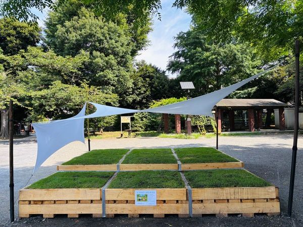 2025年8月1日〜芝生ベンチと日よけ対策のテントを設置!