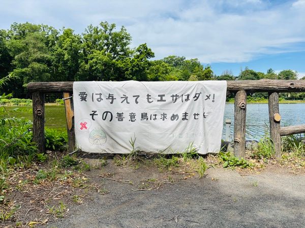 子どもや学生の手書きポスターがしばしば目につく素敵な公園
