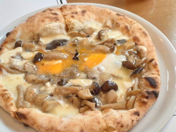 きのこピザはきのこの風味がしっかり感じられ、クリーミーなベースと半熟卵が絡み食べごたえ抜群でした。