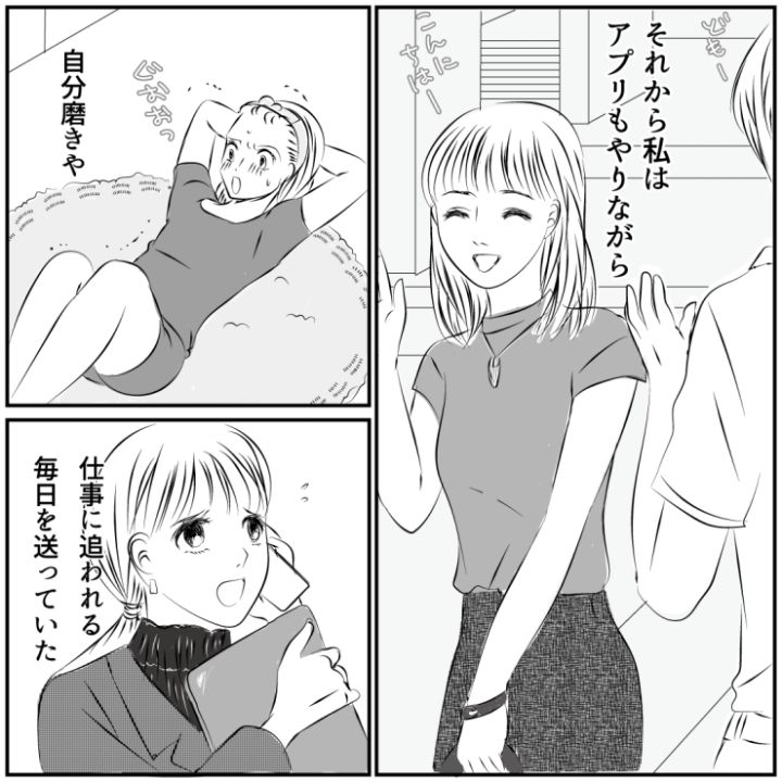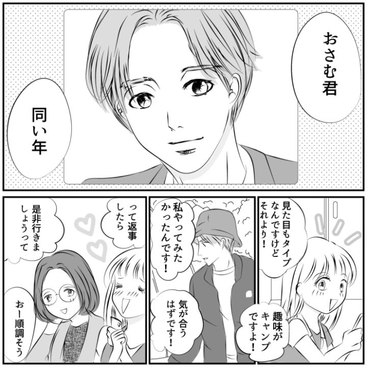 早速、タイプの人とマッチした主人公。趣味が合ったりメッセージのやりとりも順調でワクワクが止まらない様子です。