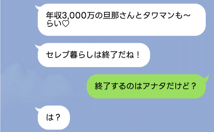 「うちの夫を狙っているのかもしれないけど、あなたが思い描いている暮らしはできないかもね」と私。すると友人は「お金があるからって偉そうにしないで!」と逆ギレします。勝手に勘違いしたのはそっちなのに……。