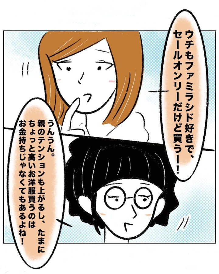 そして、「ウチもファミラシド好きで、セールオンリーだけど買うー!」と言うと、「うんうん。親のテンションも上がるし、たまにちょっと高いお洋服買うのはお金持ちじゃなくてもあるよね!」とたっくんママが賛成し、