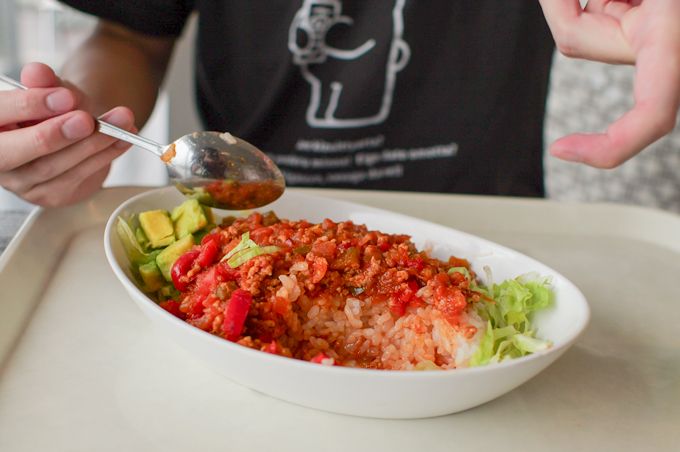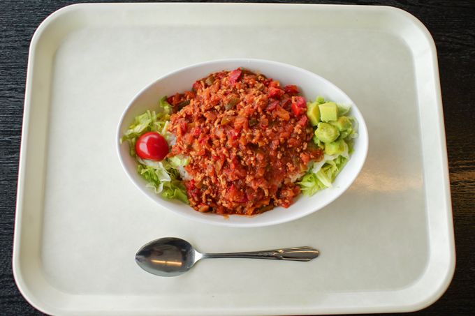 小林:ちょっと待って(笑)! このタコライス、すごい重い(笑)! しかも、これで500円だって!