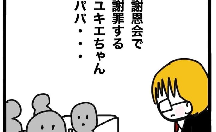 謝恩会でも申し訳なさそうに謝る雪彦さんに、ほかの保護者たちは「ユキエちゃんパパのせいじゃない!」と温かい言葉をかけます。保護者のそのやさしさに触れ、励まされたことで、ようやく雪彦さんの顔にも笑顔が戻るのでした。
