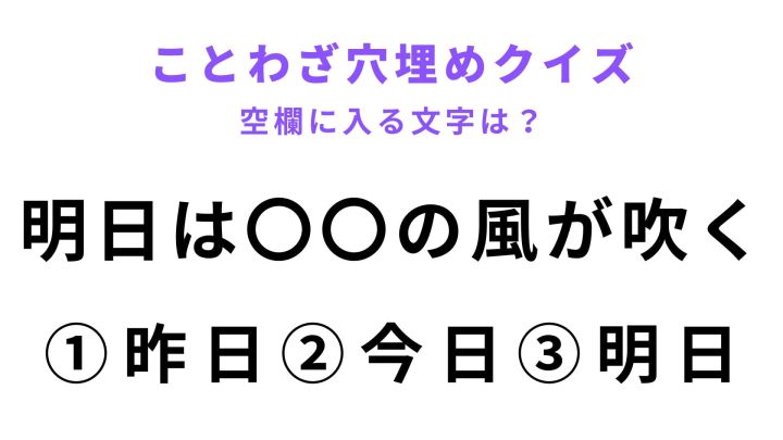 「明日は〇〇の風が吹く」の空欄に文字を入れると、あることわざが完成します。