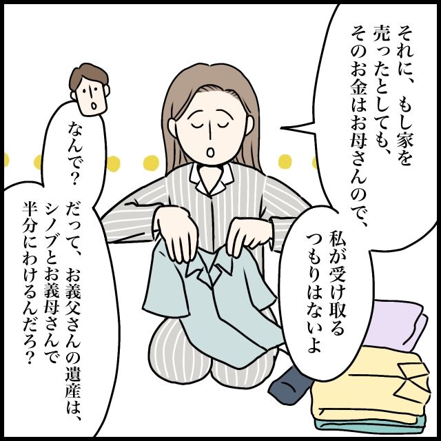 3. 妻の実家を売却し代金を半分得ようと提案する夫。拒否する妻に「もらわないと損」夫家族と遺産トラブル|ママ広場マンガ