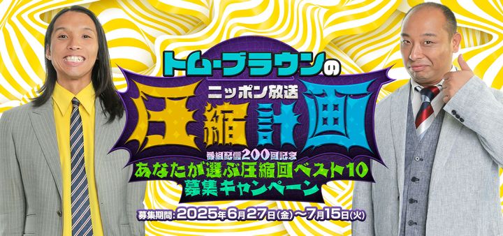 ニッポン放送が制作するポッドキャスト番組『オールナイトニッポンPODCAST トム・ブラウンのニッポン放送圧縮計画』が、2025年8月8日(金)に配信200回を迎えた。これを記念し、radikoとニッポン放送が共同で実施したリスナー投票企画「あなたが選ぶ“圧縮回”ベスト10募集キャンペーン」の結果が、本日発表された。