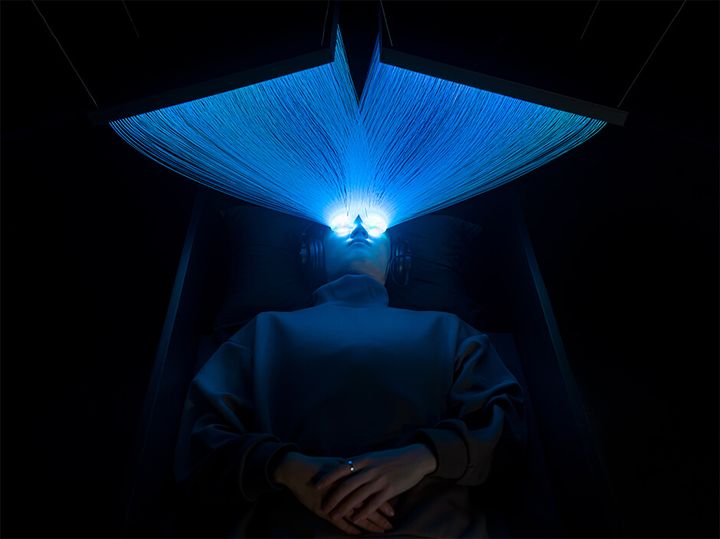 「Imagraph」は、閉じた眼に対してまぶた越しに映像を投影する光学装置。