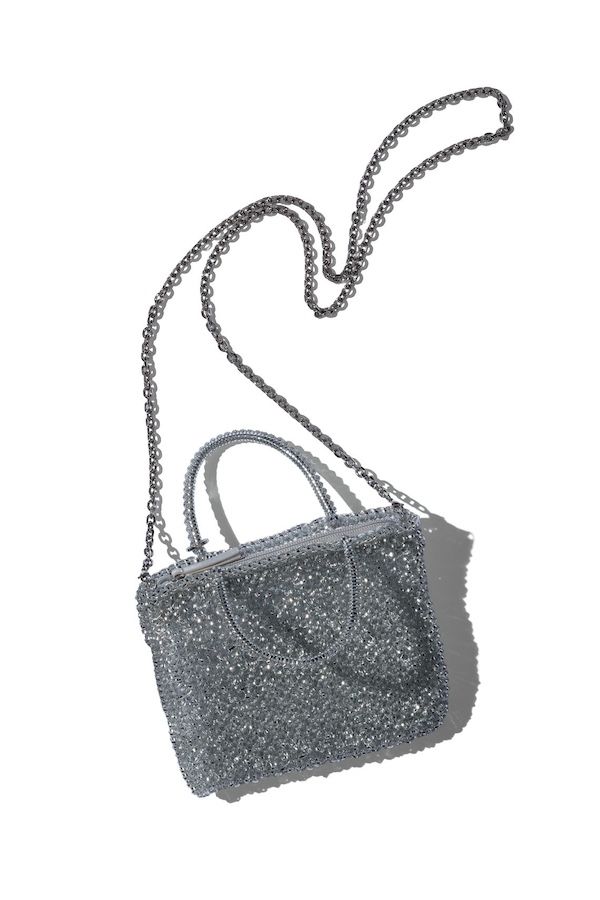 ショルダーチェーンで肩にかければ、両手が空いて身軽に♪ 爽やかなシルバーが夏向きでモノトーンコーデにも程よく映える。
