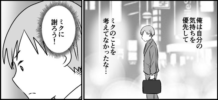 同僚に話を聞いてもらってよかった。そうじゃなければ俺の行動がいかに自分勝手だったか気づけなかったから。間違いを指摘してくれた同僚に感謝だ。