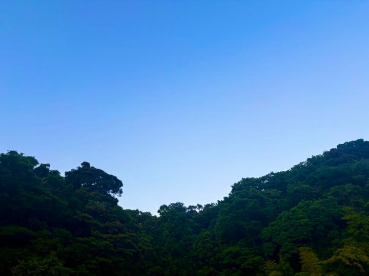 <新しい家の屋上からの眺め。木々から鳥の囀りが絶え間なく聞こえてきます>