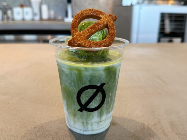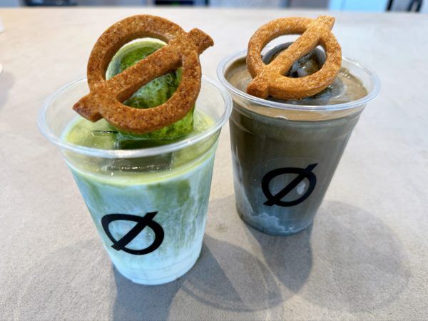 迷いに迷って注文したのは、『抹茶アフォガート ラテ』(840円)。 抹茶ジェラートの上に濃厚な八女抹茶が注がれ、香ばしい「Ø」型のクッキーがトッピングされています。冷たいジェラートと温かな抹茶が溶け合い、立ち上る抹茶の香りに思わずうっとり。香りと味の層が口にも広がり、深い抹茶の旨味を楽しめました。