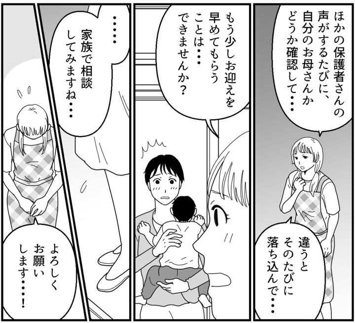 <お迎え19時カワイソー?>待ってる姿を見るのはツラい→物申す!【まんが:保育士の気持ち】
