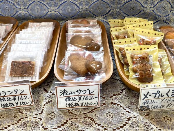 「流山サブレ」は、みりんを絞った後に残る米こうじ、通称「こぼれ梅」を生地に練り込んであるそうです。大小のハートの形がかわいい。