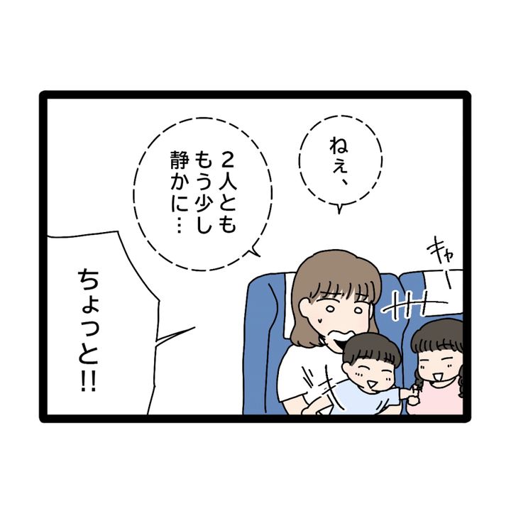 「キャーー!!」「キャッキャッ」と大騒ぎの子どもたち。「ねぇ、2人とももう少し静かに・・」小声でそう注意していると、