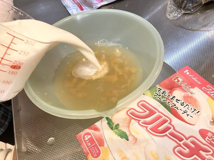 きらのどんさん一家にとっての「スペシャル」とは、なんとフルーチェ。長年多くの家庭で親しまれてきたこのデザートに、懐かしさを感じる方も多いのではないでしょうか。たった1箱で4人分ほどできるので、子どもの頃は「たくさんデザートが食べられる!」と、特別な気分になったものです。火を使わずに混ぜるだけで完成するため、子どもたちだけで作らせてもらえた楽しい記憶がある方もいるかもしれませんね。