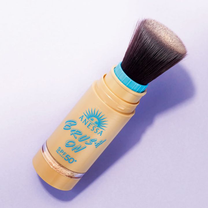 ブラシ一体型のUVカットフェイスパウダー。なじみのいいベージュ。SPF50+・PA++++ 耐水性☆ ¥3,498(資生堂)