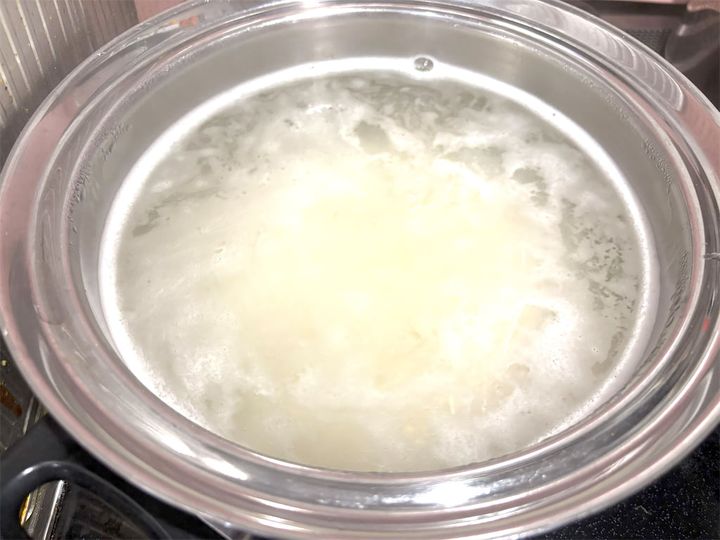 鍋に水(適量、分量外)を入れて沸騰させ、パッケージの表記通りに茹でます。