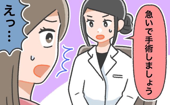 ただ、検査をした際に、なんと卵巣嚢腫(らんそうのうしゅ)があることがわかったのです! 手術が必要な大きさで「今すぐ、手術しましょう」と言われてびっくりしてしまいました。