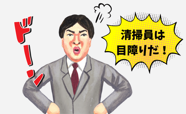 そのとき、男性の怒鳴り声が聞こえたのです。「なんだお前は! これから会議なんだ、清掃員は目障りだから消えろ!」