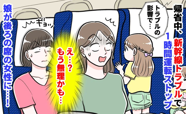 「もう無理かも…」帰省中、新幹線トラブルで1時間運転ストップ。娘が後ろの席の女性にまさか…!