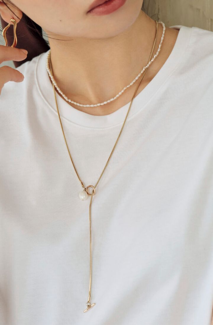 夏のワードローブに欠かせない白T。シャレ見えのキモは、小物にあり! イヤカフ、ネックレス、リング……と3点以上盛るのがポイント。スタイリスト深田さんのコメントを参考に、この夏は小物選びにこだわって。