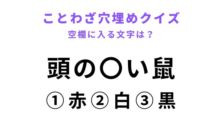 ことわざ「頭の〇い鼠」には、なんの文字が入る?