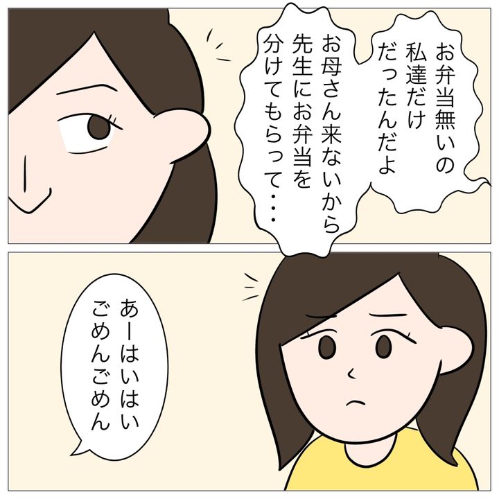 運動会にお弁当を持ってきてくれなかったことを詰め寄ると、謝るどころか「コンビニで買えばよかったじゃん!」「頭使いなよ〜」と言ってくる母。